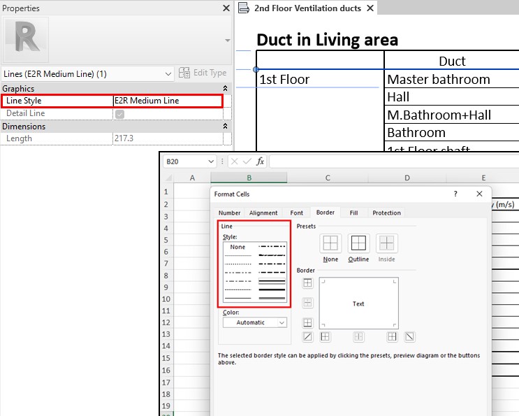 Excel2R will create **line styles** in the Revit project according to line weights that are used in the Excel file.