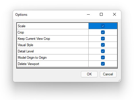 2. In the 'Option' window, choose the properties to copy from the selected views.