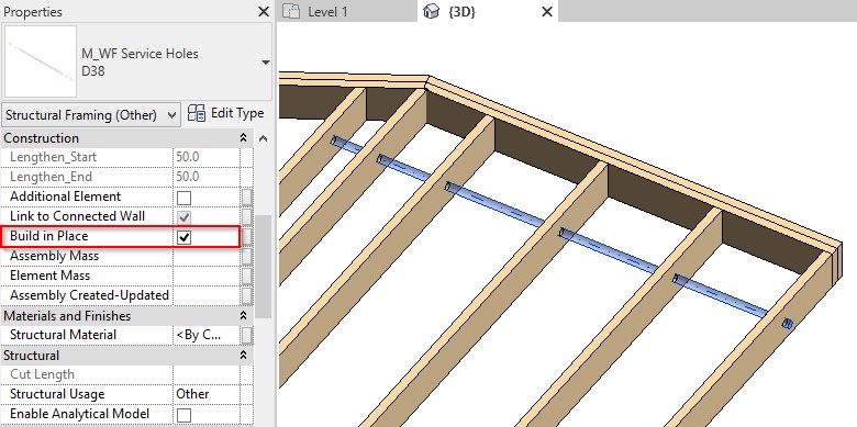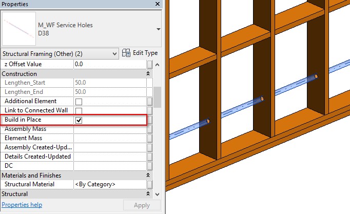 **Build in Place** – writes Yes/No information into the hole family instance parameter if it is build-in-place or is prefabricated with the whole wall/floor/roof frame. Later this parameter can be used in schedules or view filters.
