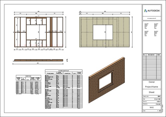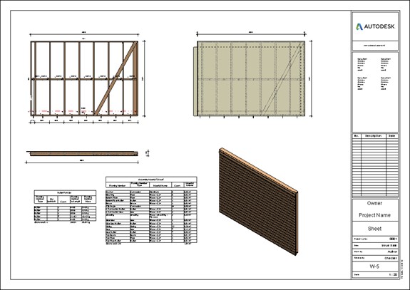 Finish your modeling with the built-in shop drawing generator and deliver your wall framing estimation in the same hour. Compile your complete shop drawings with dimensioning, part lists, and material take-off automatically.