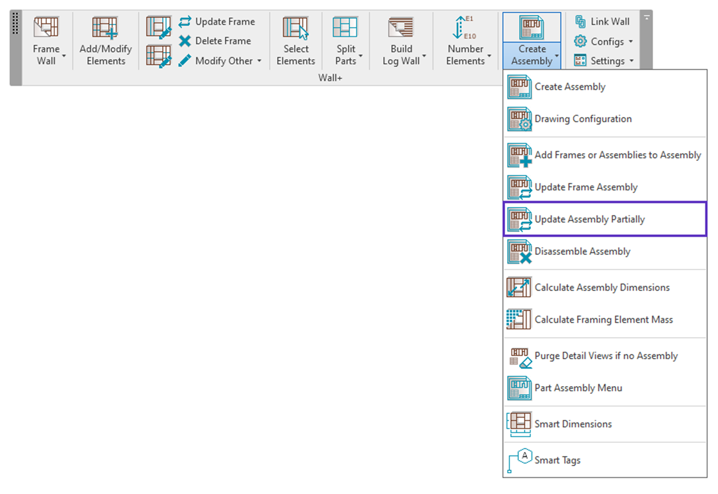 Add Frames or Assemblies to Assembly – adds all elements from the wall or assemblies to the existing assembly.