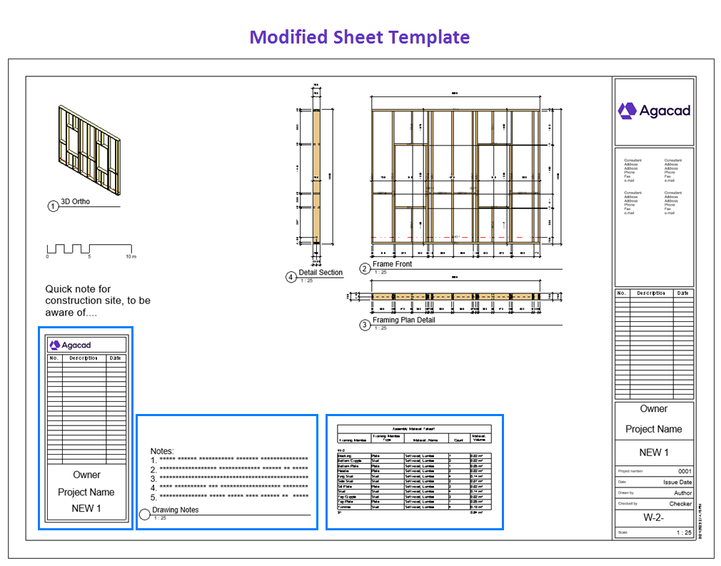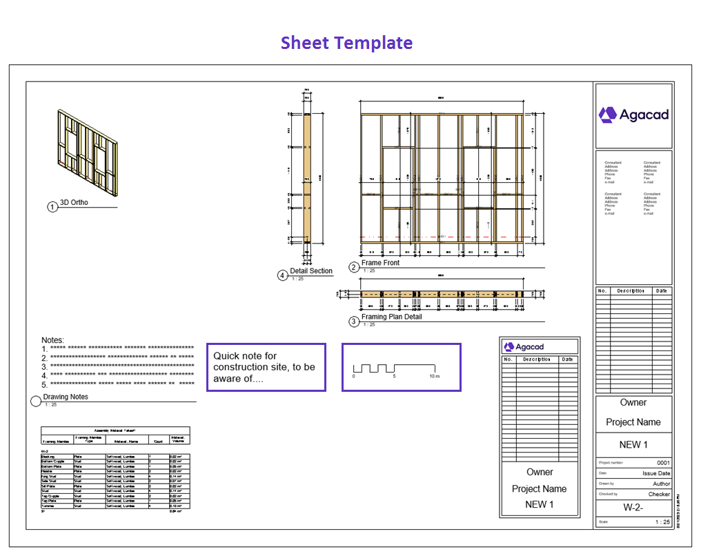 Add shop drawing views into the sheet for one wall and save it as a template for future walls