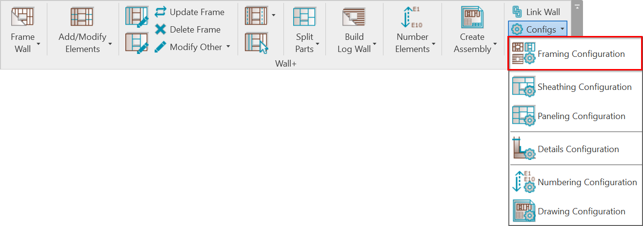 **Framing Configuration** – defines all framing settings. It allows user to configure and save settings for all sorts of frames – **Main Wall Frames**, **Secondary Frames**, **Vertical** and **Horizontal Nailers**, **Vertical** and **Horizontal Sidings**, **Wood Logs**.