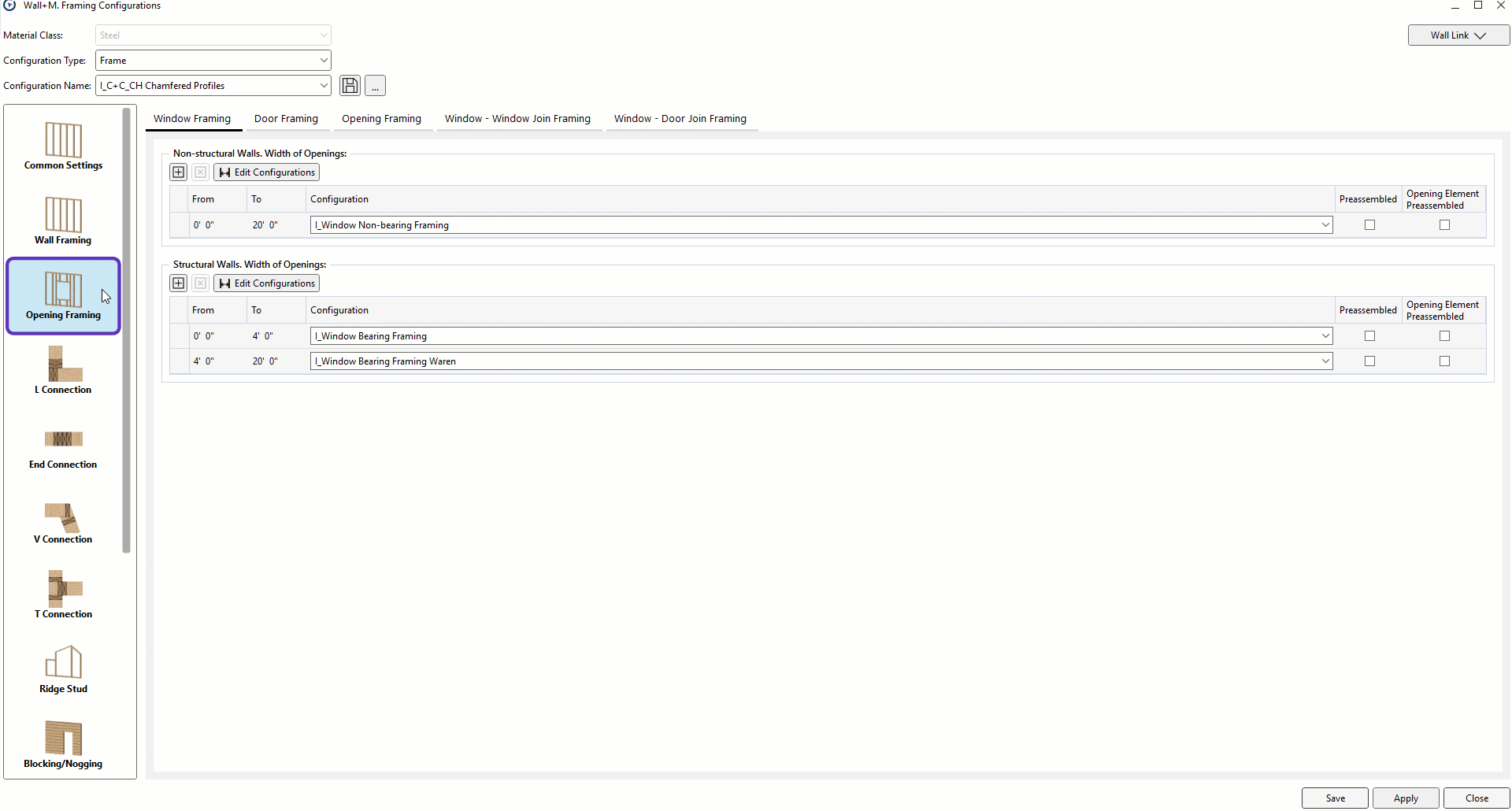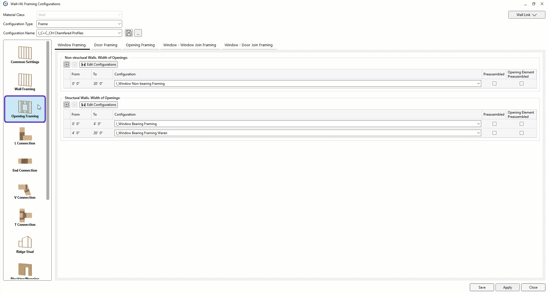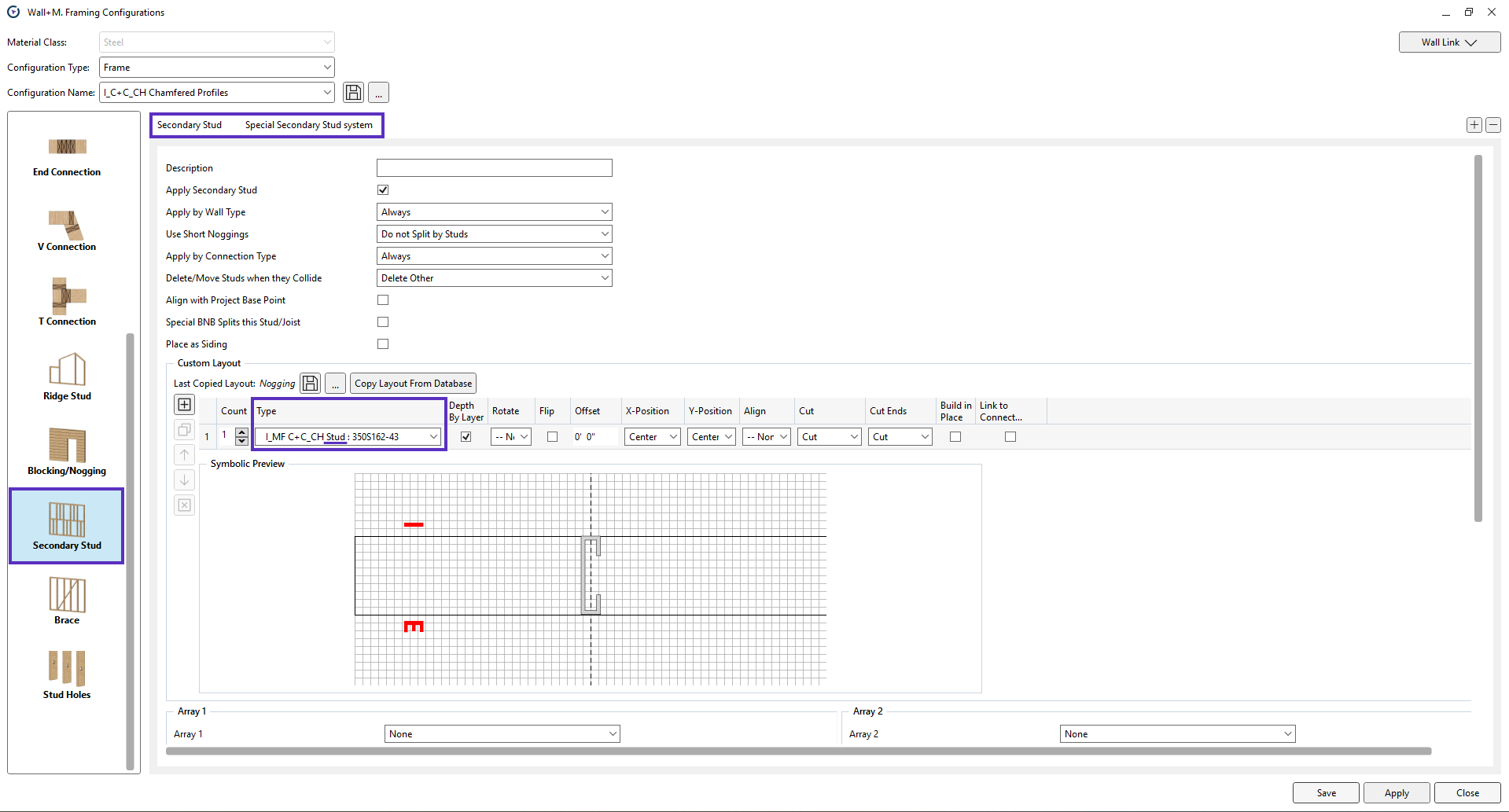 Your wall types should be linked with one of the above default Framing Configurations. [Learn more](https://docs.besmart.software/3d-modeling-and-design/metal-framing/getting-started/framing-arkitech-howick-or-pinnacle/wall+m)