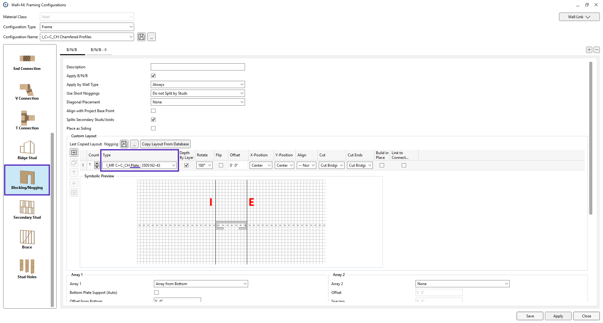 * Imperial: **I\_C+C\_CH Chamfered Profiles**: 3 1/2" studs and plates