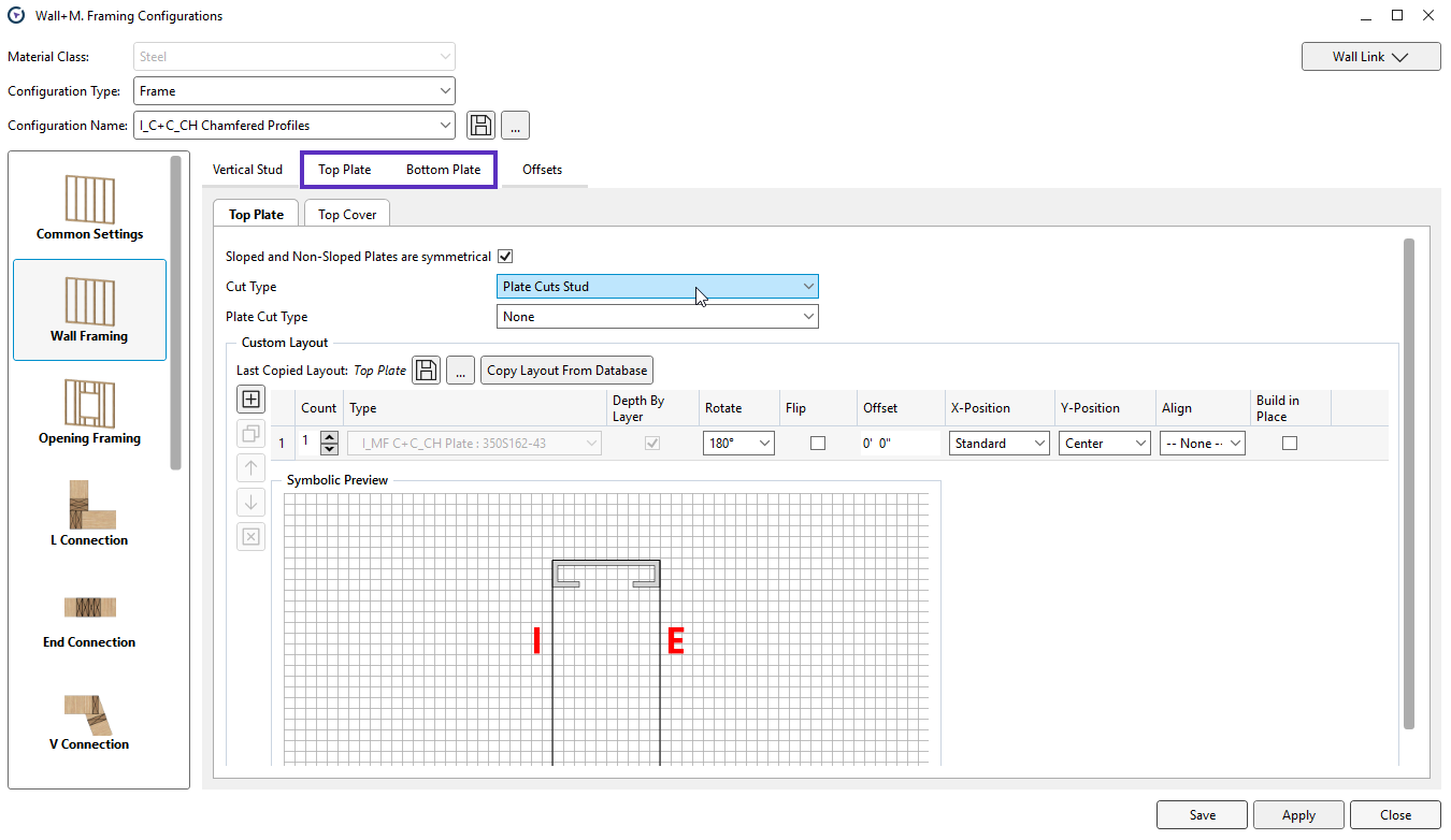 4. Go to **Cut Type** and choose **Plate Cuts Stud**
