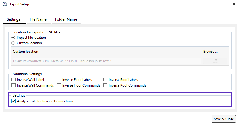 3. Tick the box **Analyze Cuts for Inverse Connections**