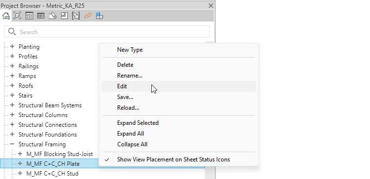 3. Right-click on the family and choose **Edit**: