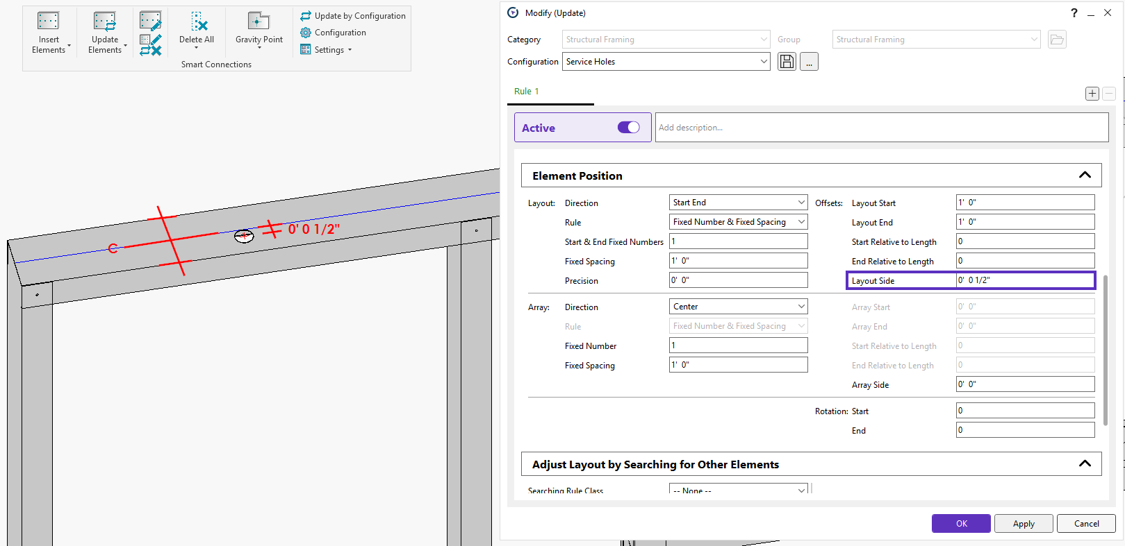 # How to insert service holes in horizontal tracks using Smart Connections?