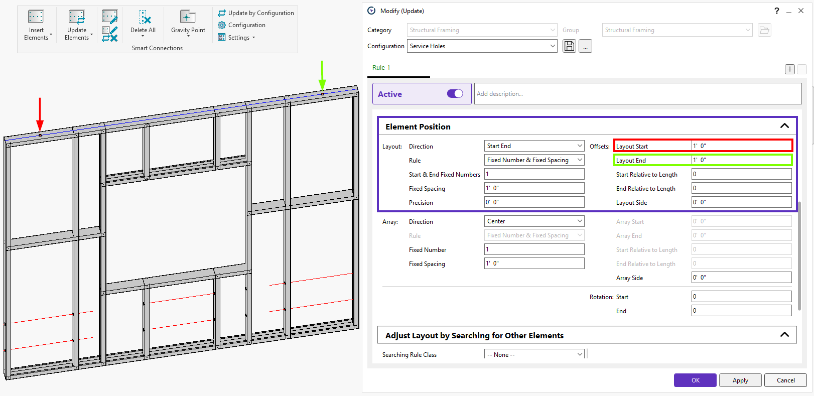 3. Adjust the **Layout Start** and **Layout End** to the desired offset