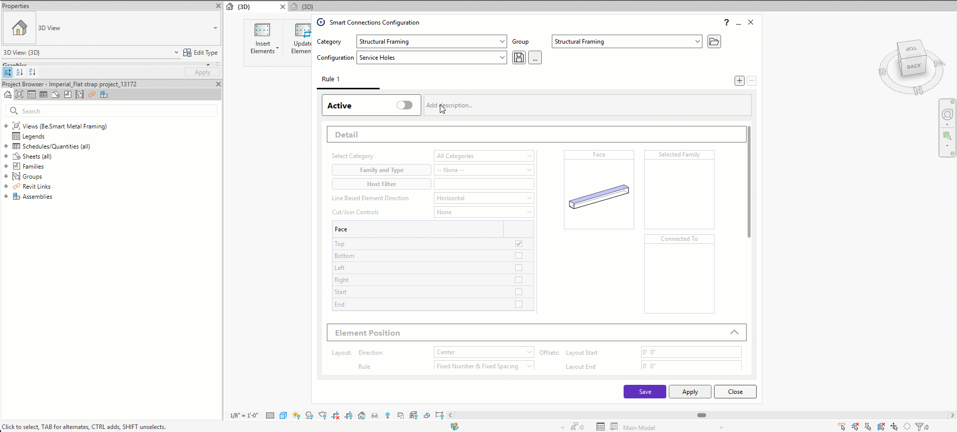 Before following this guide, make sure that your service hole families for studs are prepared for the CNC export. [**Learn more**](https://docs.besmart.software/3d-modeling-and-design/metal-framing/faq/family-libraries/service-holes/how-to-create-service-holes-in-horizontal-tracks)