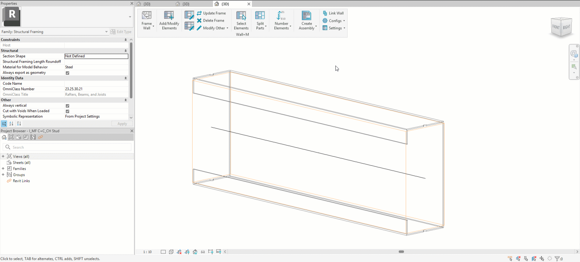 4. Go to **Modify Other** > **Update Wall** **by Wall Link** or simply click on **Frame Wall** and **re-frame the wall:**