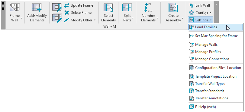 Go back to Revit and find **Wall+M** tool. Open the **Load Families** dialogue: