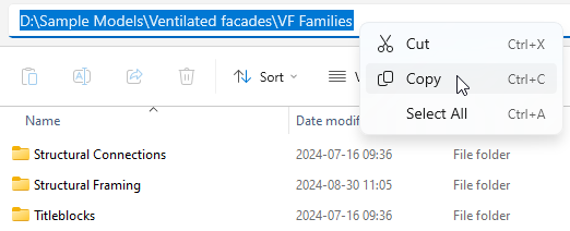 After extracting VF Families ZIP file, copy the **VF Families** folder file path: