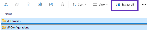 After downloading all folders. Here's an example with the VF Configurations.zip file. Select and extract all files using the Extract all button: