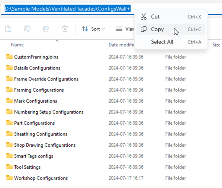 You should also copy the file path for the dimensioning rules. Part of the file path is found in Wall+M configuration folders: