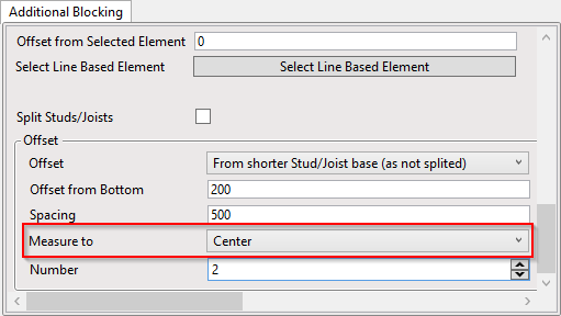 **Measure to** – measures the offset and spacing to bridging/nogging/blocking top/bottom or center.