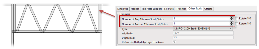 You can predefine top and bottom trimmers under Floor+ → Configs → Framing Configuration → Opening Framing: