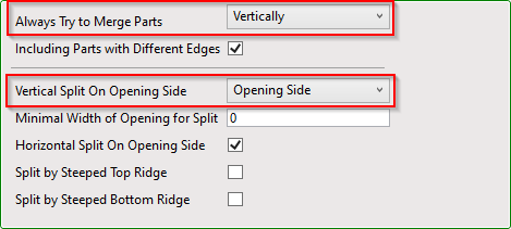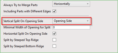 Horizontal Split on Opening Side – define whether the panels must be split horizontally around the opening.
