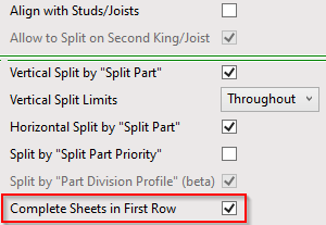Complete Sheets in First Row – reverses panel placement direction. If Placement Direction is set to From Start and Complete Sheets in First Row is OFF, then the placement direction will be from end.