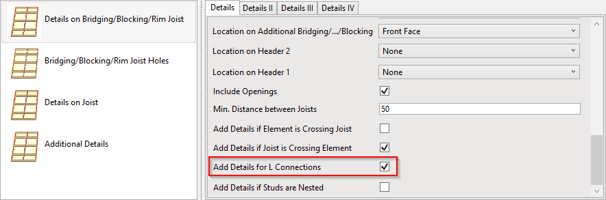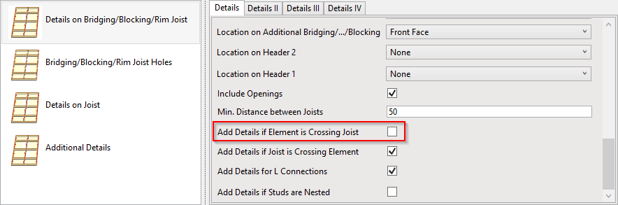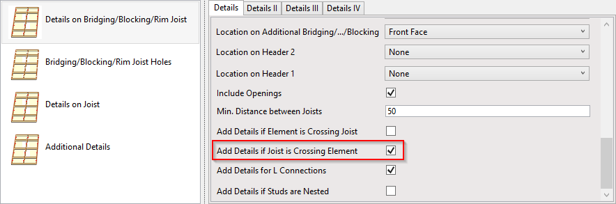 **Add Details if Element is Crossing Joist –** adds details in places where rim joist/bridging/nogging is crossing joist.