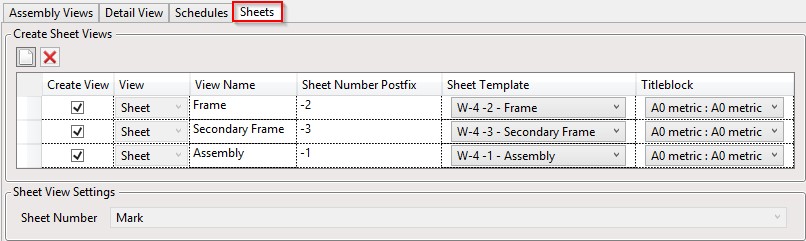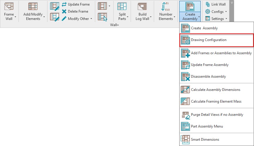 Create first assembly → add views to the sheet manually → open **Drawing Config** → **Sheets** → select a sheet to be a template for other walls.
