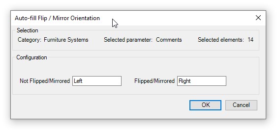 This command writes the **flip/mirror orientation** (determines if a Mirror command was used) for the elements of the selected category to the assigned text parameter or newly-created shared parameter.