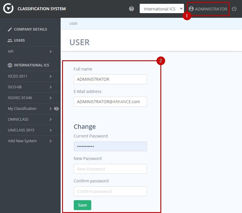 Your user profile contains the personal information necessary to use the online Classification System service. You can change your full name, email address, and password using the Profile page.