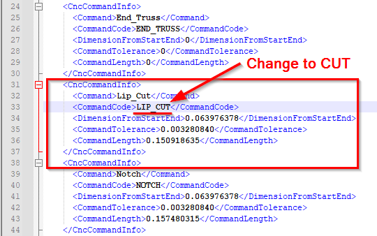 *For example, you need to change the command name. So, change the **LIP\_CUT** to **CUT** near CommandCode:*