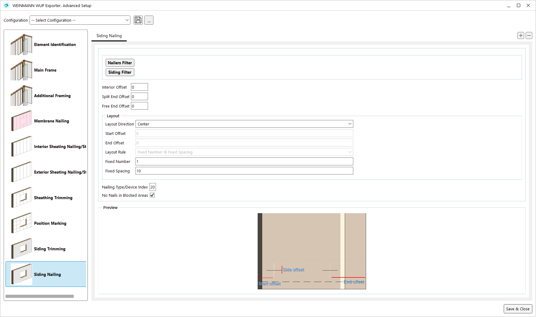 * ***Siding Filter*** – lets you create a filter based on parameters to exclude certain siding elements from being nailed.