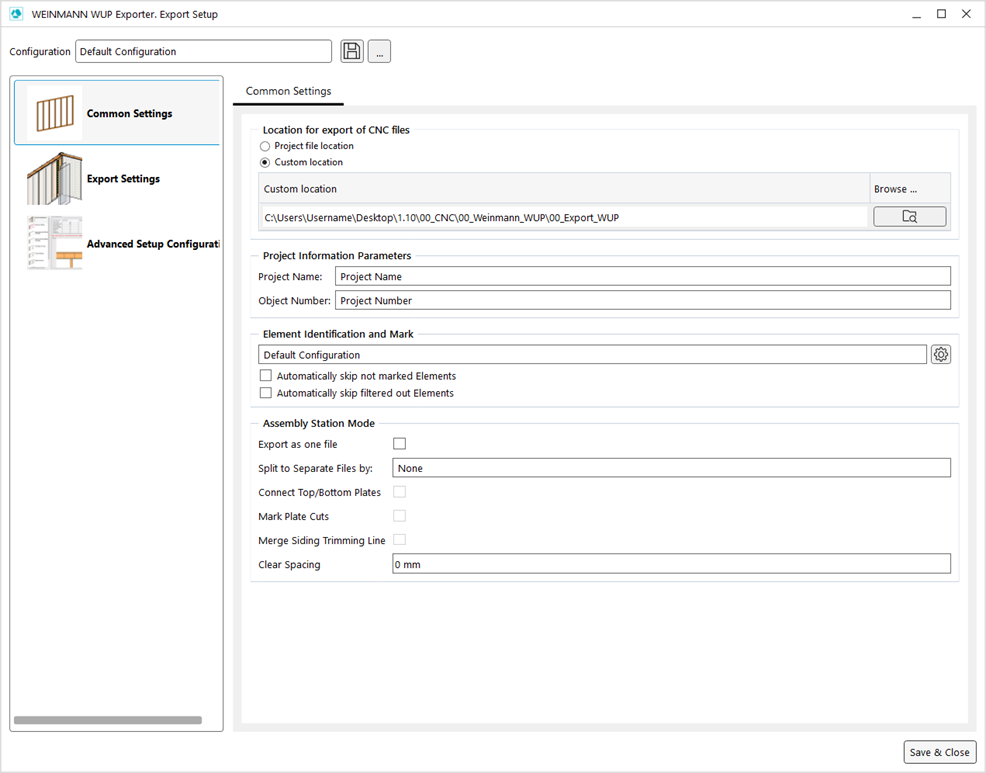 * ***Configure*** ![](https://239424168-files.gitbook.io/~/files/v0/b/gitbook-x-prod.appspot.com/o/spaces%2FqtUsszuAWXIZhQhrvjnb%2Fuploads%2FPNrFslYpBSmRBicf38GP%2FCNC_Configure_button.png?alt=media\&token=89113af0-b548-4280-94f3-d2c13af0c296) button opens [Advanced Setup menu (Element Identification and Mark)](https://docs.besmart.software/design-data-management-and-exchange/cnc-exporters/weinmann-wup/user-interface/export-setup-window/common-settings/advanced-setup-element-identification-and-mark) for editing configuration for markings