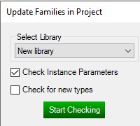While in the project that you want to check and update, open the 'Update Families in Project' menu. In the newly opened window, select a library that will serve as a template for the update.&#x20;